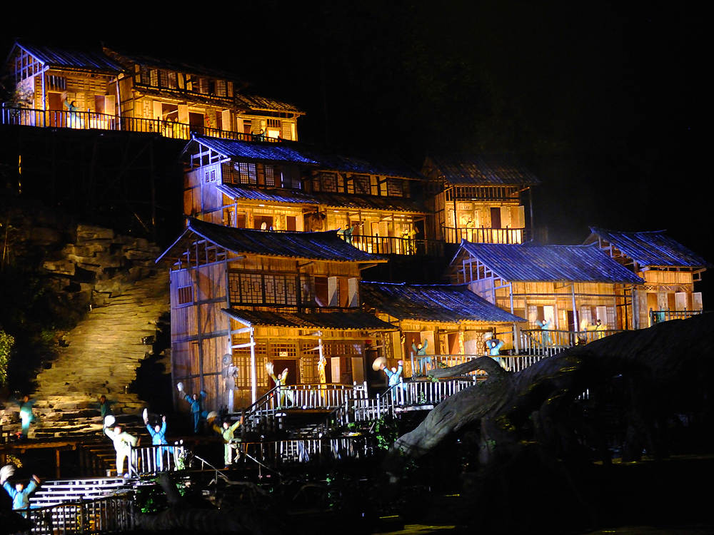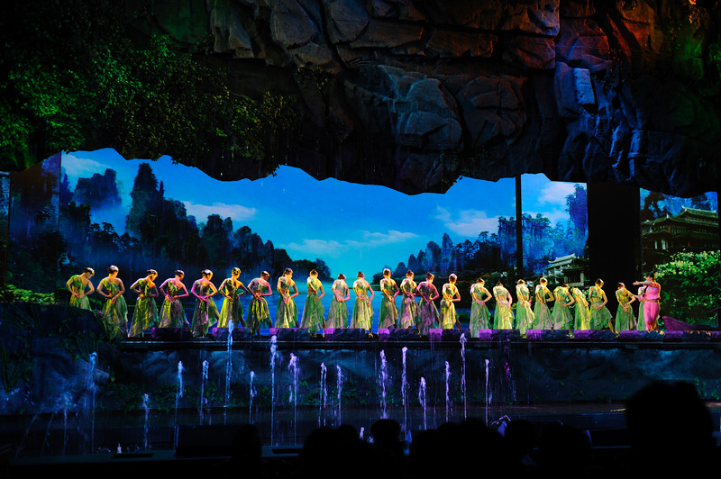《天門狐仙》:位于張家界市區(qū)的大型山水實(shí)景音樂劇,以高山峽谷做舞臺(tái)背景、使用頂尖科技舞美燈光音響、融入了張家界獨(dú)特的民歌和土家的民俗,將古老的“劉??抽浴眰髡f在美麗的天門山下演繹的淋漓盡致。