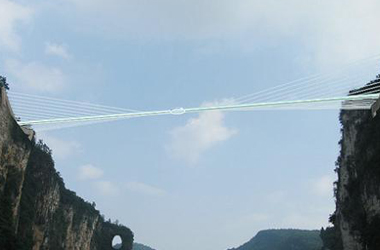 這座玻璃橋位于張家界大峽谷景區(qū),是世界最高、跨度最長的玻璃橋,大橋建在大峽谷兩側的峰頂上,橫跨大峽谷,橋拱距谷底相對高度約400米,全長約370米,橋面全部采用透明玻璃鋪設,橋中心有全球最高的蹦極。站在橋上,腳下400米處的谷底全景盡收眼底。玻璃主橋建成后將申報吉尼斯世界紀錄。